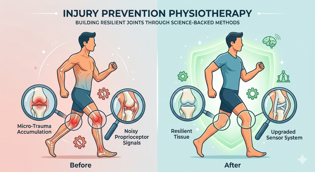 Because if your brain knows exactly where your joint is in space, it can fire your “protector” muscles faster, which is the core goal of injury prevention physiotherapy.